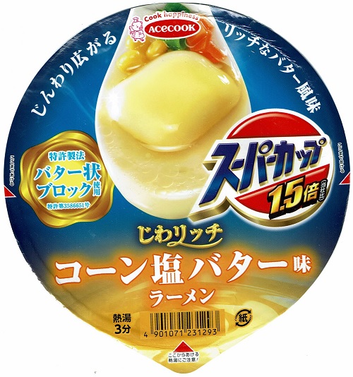 それでは本日の一杯、『スーパーカップ1.5倍 じわリッチ コーン塩バターラーメン』です。