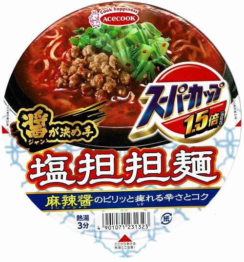 それでは本日の一杯、『スーパーカップ1.5倍 醤が決め手 塩担担麺』です。
